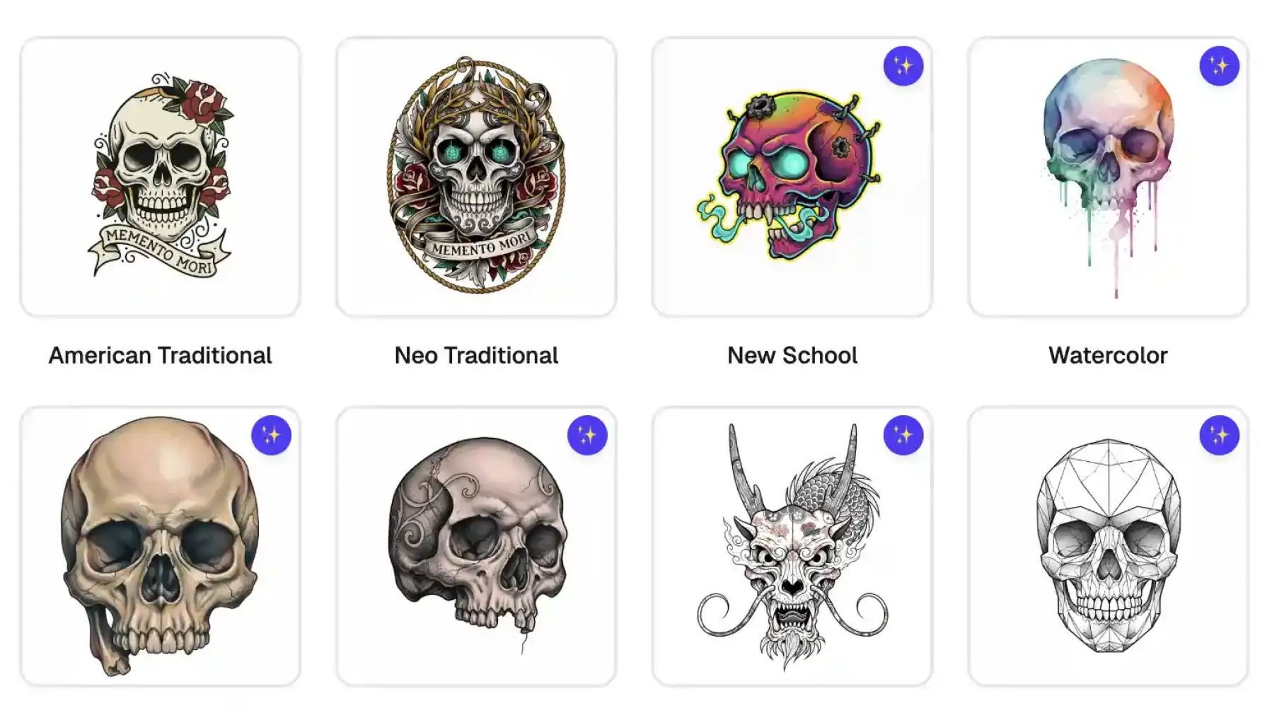 Explore styles you never considered. Maybe you thought you wanted American Traditional, but seeing a Neo-Traditional version of your concept changes your mind. The Overchat AI Tattoo Generator offers 12 distinct styles including Japanese, Watercolor, Geometric, and Horror.