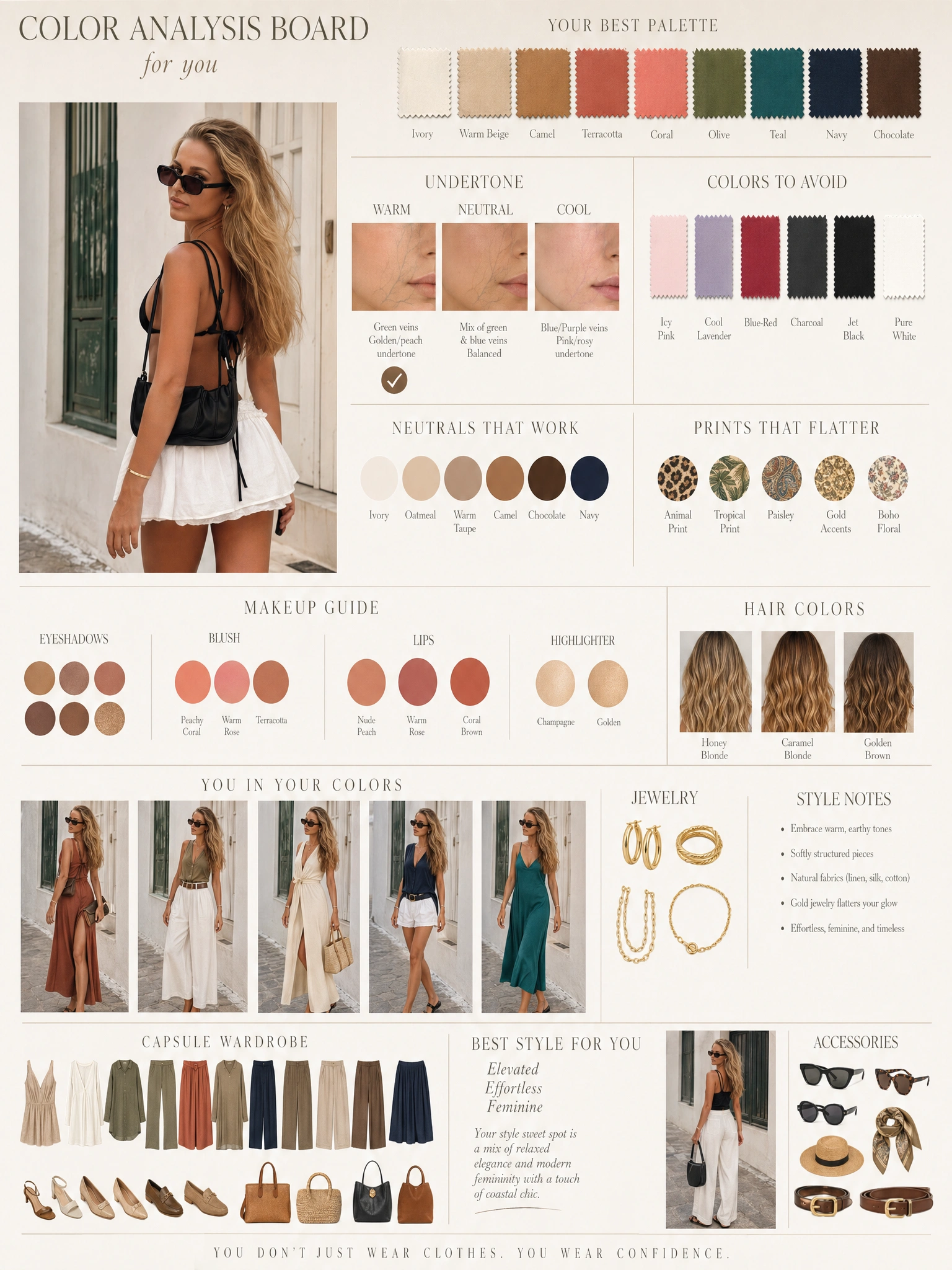 Cut shopping in half. Know your palette, archetype, and proportions, and only buy pieces that fit the profile — fewer returns, fewer mistakes.