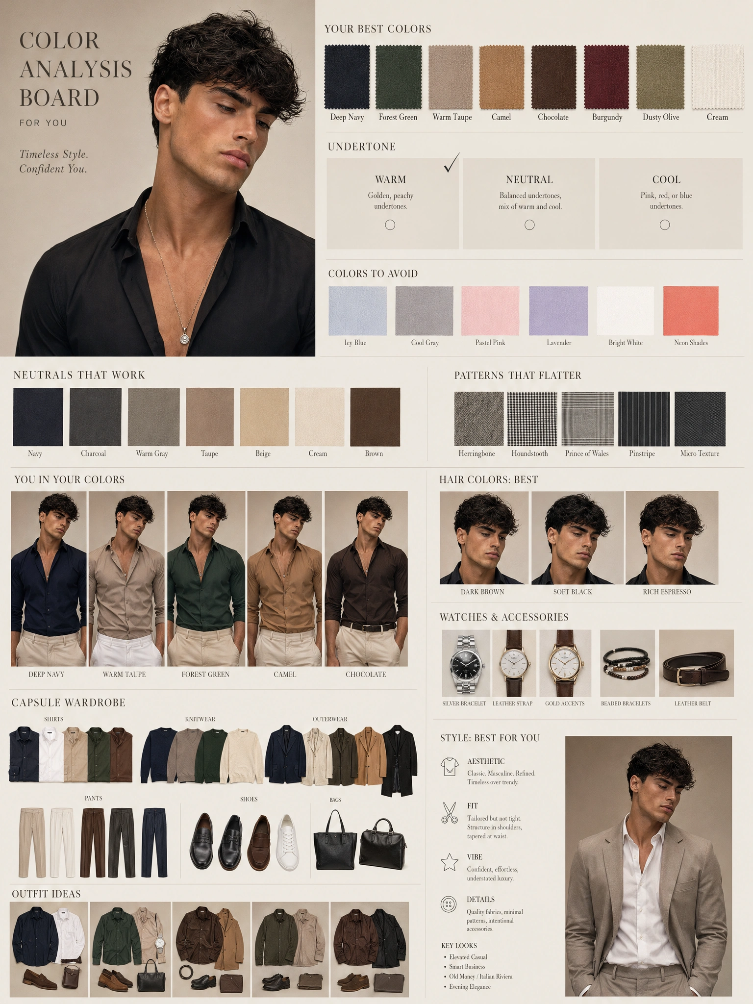 Going for a refresh? Use the analysis as a starting point for a haircut, color, or full wardrobe reset — with concrete recommendations instead of vague Pinterest boards.